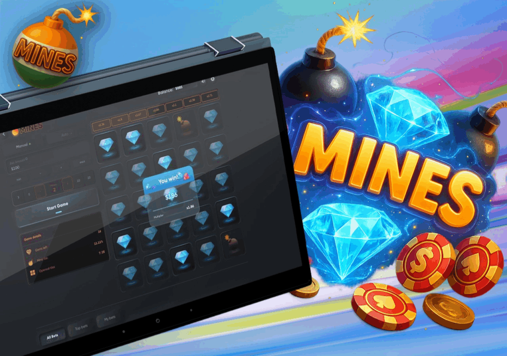 Multiplayer Mines is a live casino game where 4 worldwide players compete simultaneously. At 96% RTP, you receive 22 gems and 3 mines. The game includes bonuses – collect 1-5 bonus gems to multiply winnings by 1% each. More than 5 bonus gems multiply winnings by 20%.